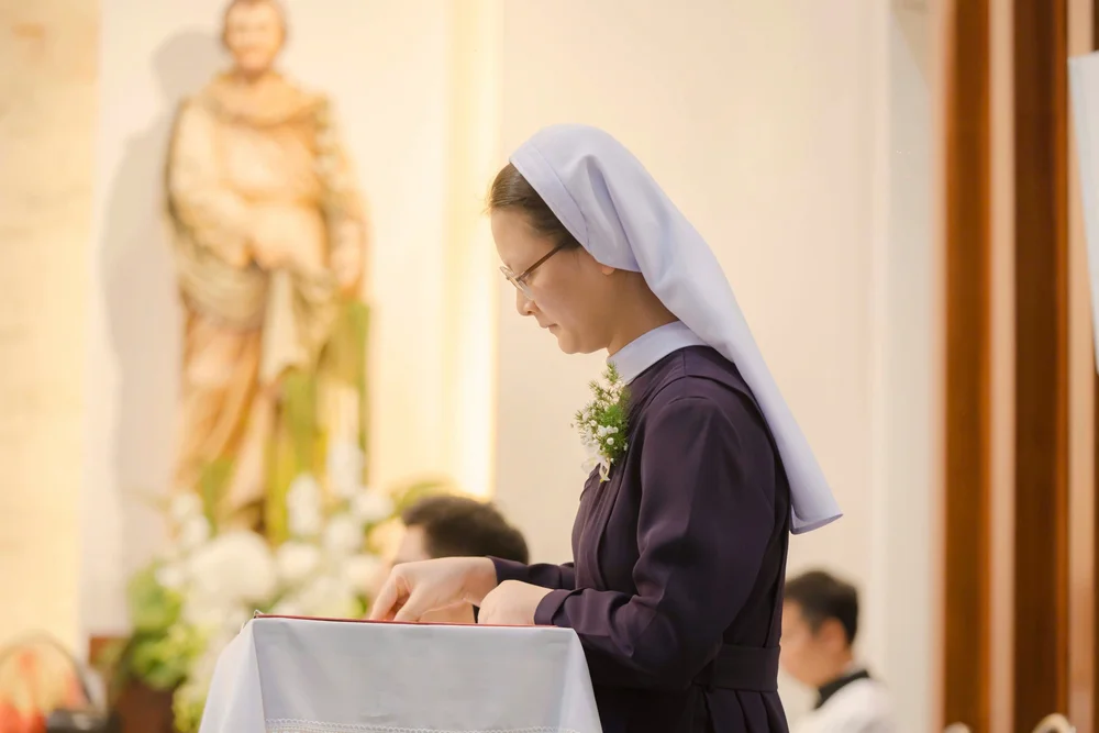 Nguyện xin Đức Mẹ Hiệp Nhất, cùng Thánh Cả Giuse luôn chở che, nâng đỡ và dẫn dắt các Tân Khấn Sinh trên hành trình tận hiến, để mỗi ngày sống của các chị là một bước tiến sâu hơn trong tình yêu Thiên Chúa – Đấng mà các chị đã chọn là phần gia nghiệp duy nhất của đời mình.