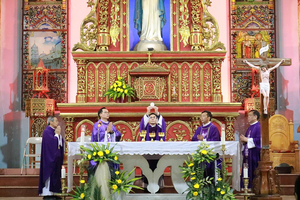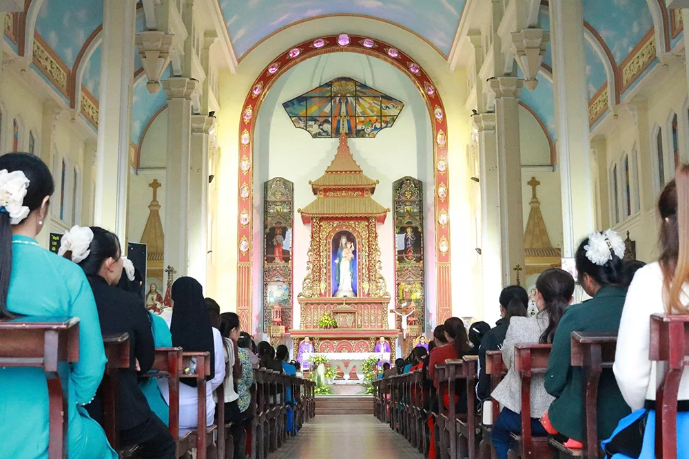 Thánh lễ hành hương được cử hành cách trang trọng vào lúc 15 giờ do Cha Tổng đại diện Phêrô Nguyễn Công Văn chủ tế. Qua phụng vụ Lời Chúa, cộng đoàn được mời gọi chiêm ngắm gương sống khiêm nhu và vâng phục của Mẹ Maria – Đấng đã thưa “Xin Vâng” để chương trình cứu độ của Thiên Chúa được thực hiện. Qua bài giảng trong thánh lễ, Cha đặc trách Phêrô cũng mời gọi mọi người ý thức hơn về trách nhiệm sống đức tin giữa đời thường, trở nên chứng nhân của yêu thương và bình an.
