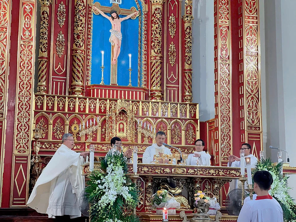 Cao điểm của ngày hành hương là Thánh lễ tạ ơn. Thánh lễ đồng tế trọng thể hôm nay được cử hành do cha Phêrô Vêrôna Chu Quang Hoà – Quản hạt Vĩnh Phúc chủ sự.