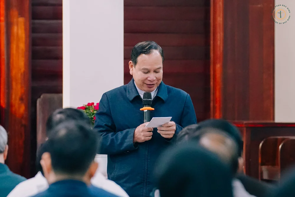 Cộng đoàn hân hoan chào đón cha Tổng Đại diện Phê-rô Nguyễn Công Văn đến gặp gỡ và chia sẻ. Trong tâm tình chân thành, cha bày tỏ lòng tri ân đối với những đóng góp âm thầm nhưng bền bỉ của quý cha, quý tu sĩ cho đời sống và sứ vụ của Giáo phận Bắc Ninh, đặc biệt nơi những vùng khó khăn, ít được chú ý nhưng lại rất cần sự hiện diện của Tin Mừng.