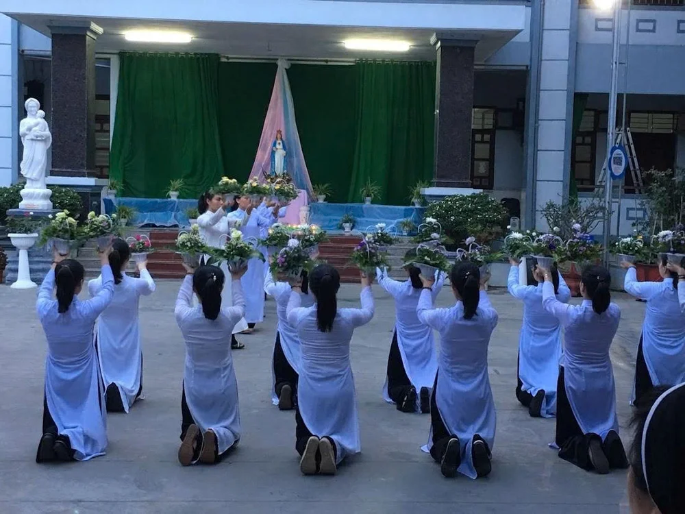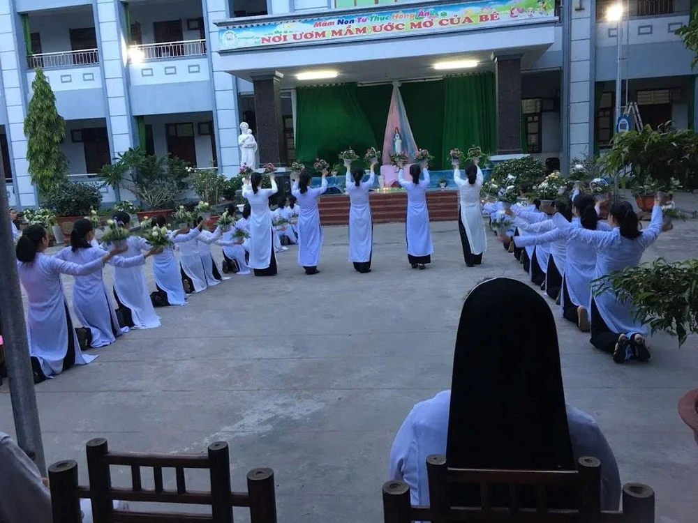 Đặc biệt, trong suốt tháng Hoa Mân Côi, mỗi buổi sáng sau giờ thể dục, các cô và các em bé hồn nhiên dâng lên Mẹ những bông hoa, những lời ca, ánh mắt, và cả những cử chỉ nhỏ bé nhưng chan chứa tình yêu. Mỗi cánh hoa dâng lên như lời kinh ngây thơ, như lời tạ ơn thay cho tất cả chúng ta – những người đã và đang được sống trong vòng tay hiền mẫu của Đức Mẹ.
