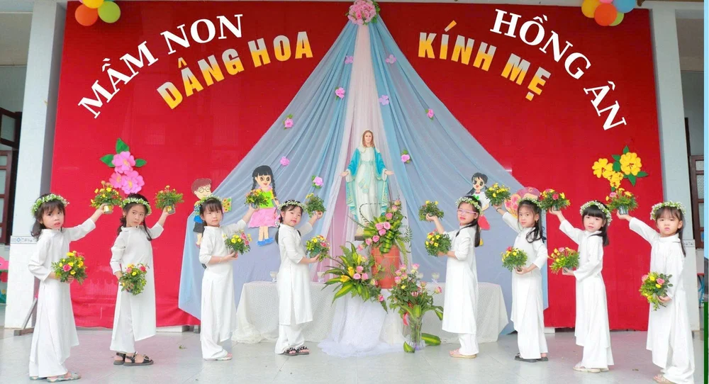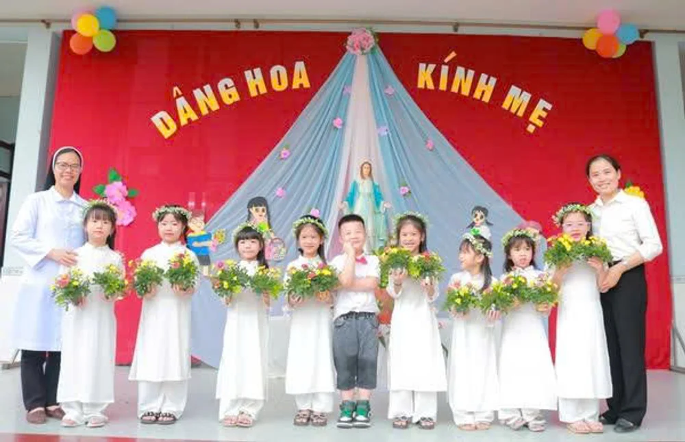 Biết bao năm qua, Mẹ vẫn âm thầm hiện diện trong từng góc sân, từng tiếng cười trẻ thơ, từng bước chân nhỏ hồn nhiên chạy nhảy. Mẹ là nguồn cảm hứng để các cô giáo gieo hạt yêu thương, và cũng là nguồn nâng đỡ để các em bé lớn lên trong an bình, trong niềm vui, trong ánh sáng của Tin Mừng.