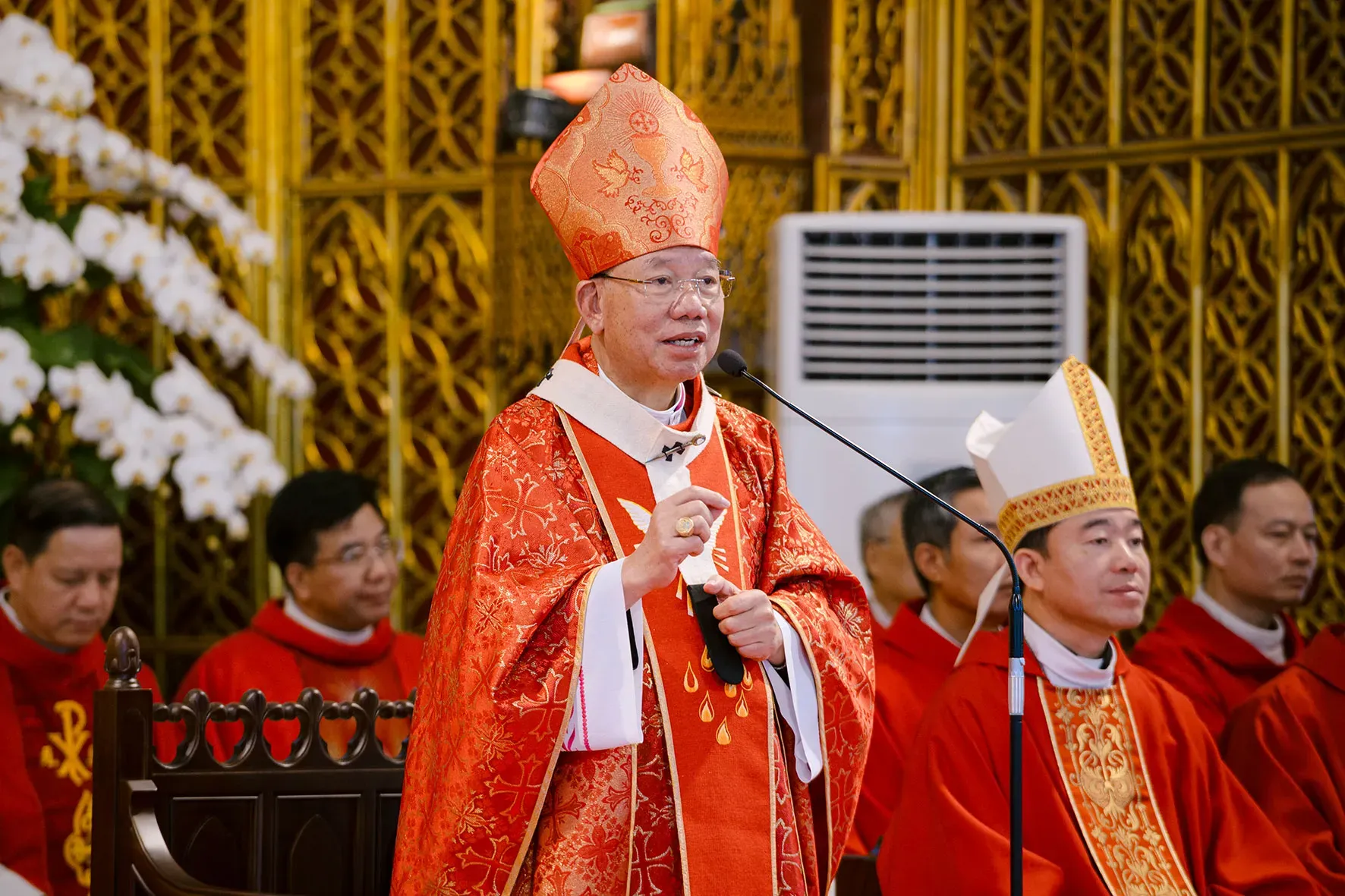 Trong bầu khí trang nghiêm, đoàn đồng tế tiến vào thánh đường theo Thánh Giá Chúa, giữa tiếng ca hùng tráng tạ ơn Thiên Chúa và tôn vinh Các Thánh Tử Đạo. Mở đầu Thánh lễ, Đức Tổng nhắc nhớ rằng Giáo hội Việt Nam được thế giới biết đến nhờ máu đào của các chứng nhân anh hùng. Các Thánh Tử Đạo đã đổ máu để làm chứng cho Đức Tin; các ngài chính là “hạt giống” trổ sinh muôn tín hữu hôm nay. Vì thế, khi trở về cội nguồn đức tin, người tín hữu hãy xin ơn vững vàng, trung thành và can đảm như cha ông.