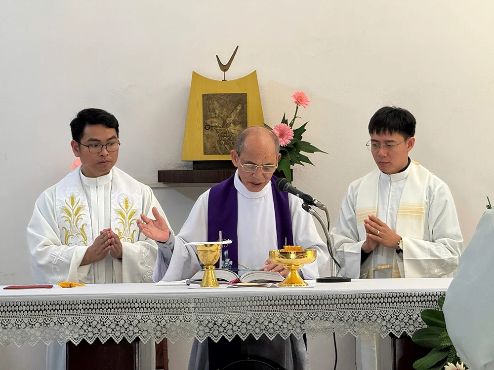 Ngay sau đó, tại nhà nguyện Tòa Giám mục, phái đoàn cùng hiệp dâng Thánh lễ cầu nguyện cho Đức cha Đaminh và tất cả các Đấng bậc đã coi sóc Giáo phận Bắc Ninh đã qua đời.