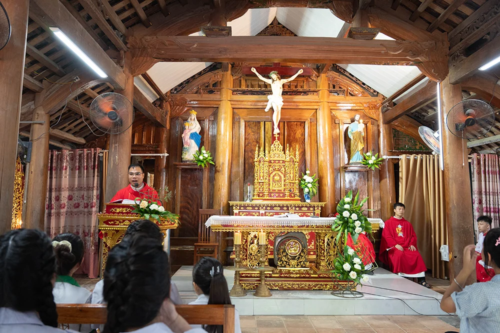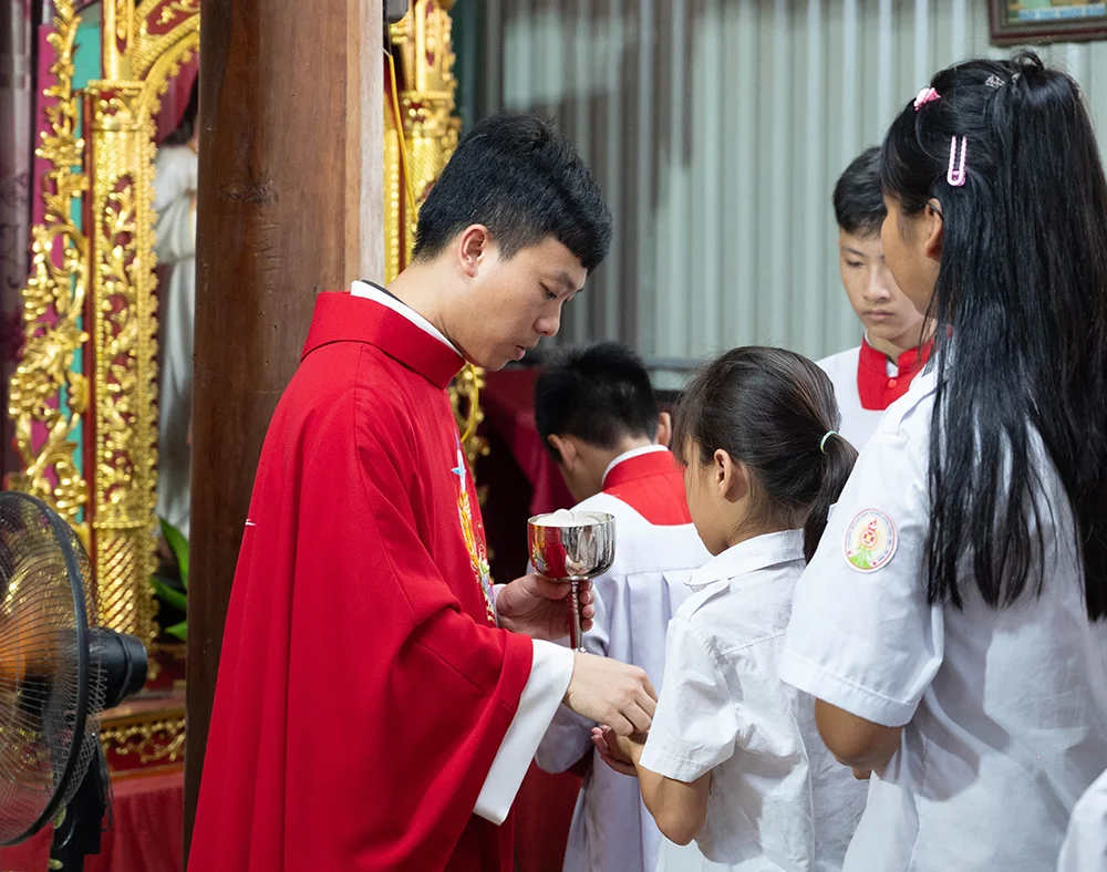 Thánh lễ tạ ơn diễn ra lúc 15g00 tại nhà thờ giáo họ Phú Thịnh, do cha xứ Giuse Hoàng Văn Thập chủ sự. Đồng tế trong Thánh lễ có cha phó Giuse Trần Văn Tuyển, đặc trách giới trẻ giáo hạt Tuyên Quang, và cha quê hương Giuse Vũ Long Quân. Hiệp dâng Thánh lễ còn có quý tu sĩ, Hội đồng Mục vụ giáo xứ, các bậc phụ huynh, Ban Điều hành Giới trẻ giáo phận, đại diện giới trẻ các giáo xứ Đồng Chương, Tân Bình, cùng gần 80 bạn trẻ trong toàn giáo xứ.