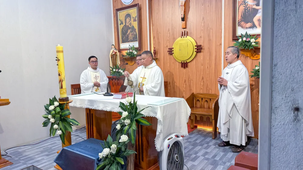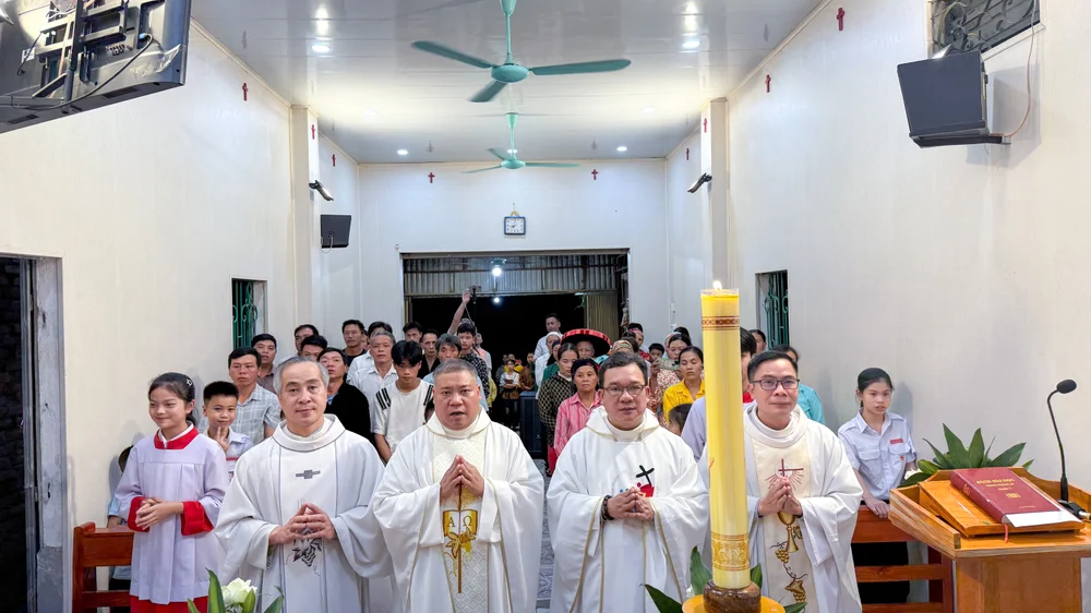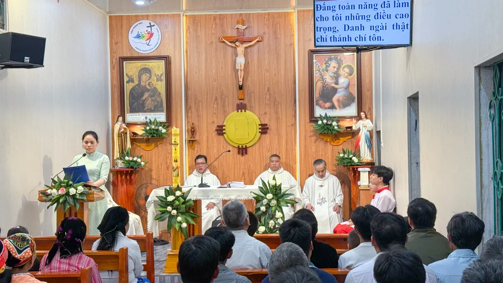Trước Thánh lễ, quý cha gặp gỡ cộng đoàn trong tinh thần gia đình cách sốt sắng và gần gũi. Đúng 18h30, Thánh lễ diễn ra do Cha Giuse Nguyễn Văn Công – Trưởng ban Loan báo Tin Mừng chủ tế. Đồng tế với ngài có Cha quản xứ Phêrô, Cha Giuse Trần Văn Chỉnh- Phó ban Loan báo Tin Mừng và cha Dominic Ngô Quang Duẩn thân thiết với giáo họ, cùng sự hiện diện của các anh chị em đồng bào H’mông, Dao, Tày và Kinh thuộc địa bàn giáo họ Pác Nặm.