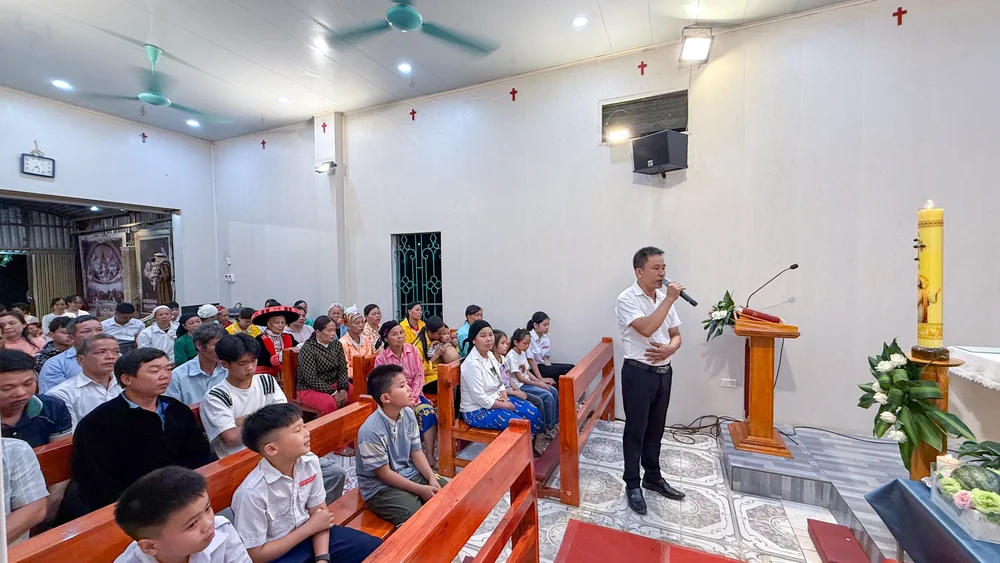 Kết thúc Thánh lễ, Cha chủ tế chia sẻ vài điều tâm tình về sự nối kết trong toàn cộng đoàn của giáo phận, tuy là xa xôi nhưng lại rất gần vì Pác Nặm ví như trái tim của giáo phận. Đức Cha giáo phận cũng luôn cầu nguyện cho giáo họ và cha chủ tế cũng xin mọi người cầu nguyện cho sứ mạng loan báo Tin Mừng tở vùng sâu vùng xa này.