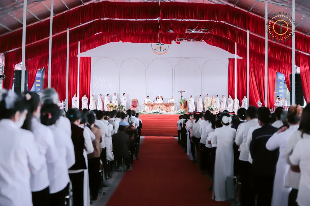Thánh lễ do Cha Tổng Đại diện Phêrô Nguyễn Công Văn chủ sự, cùng quý cha trong giáo phận và giáo hạt Nội Bài đồng tế. Trong đoàn rước đầu lễ trang nghiêm, sắc trắng tinh khôi của tinh thần dòng Đaminh như tô điểm thêm cho bầu khí của ngày lễ.