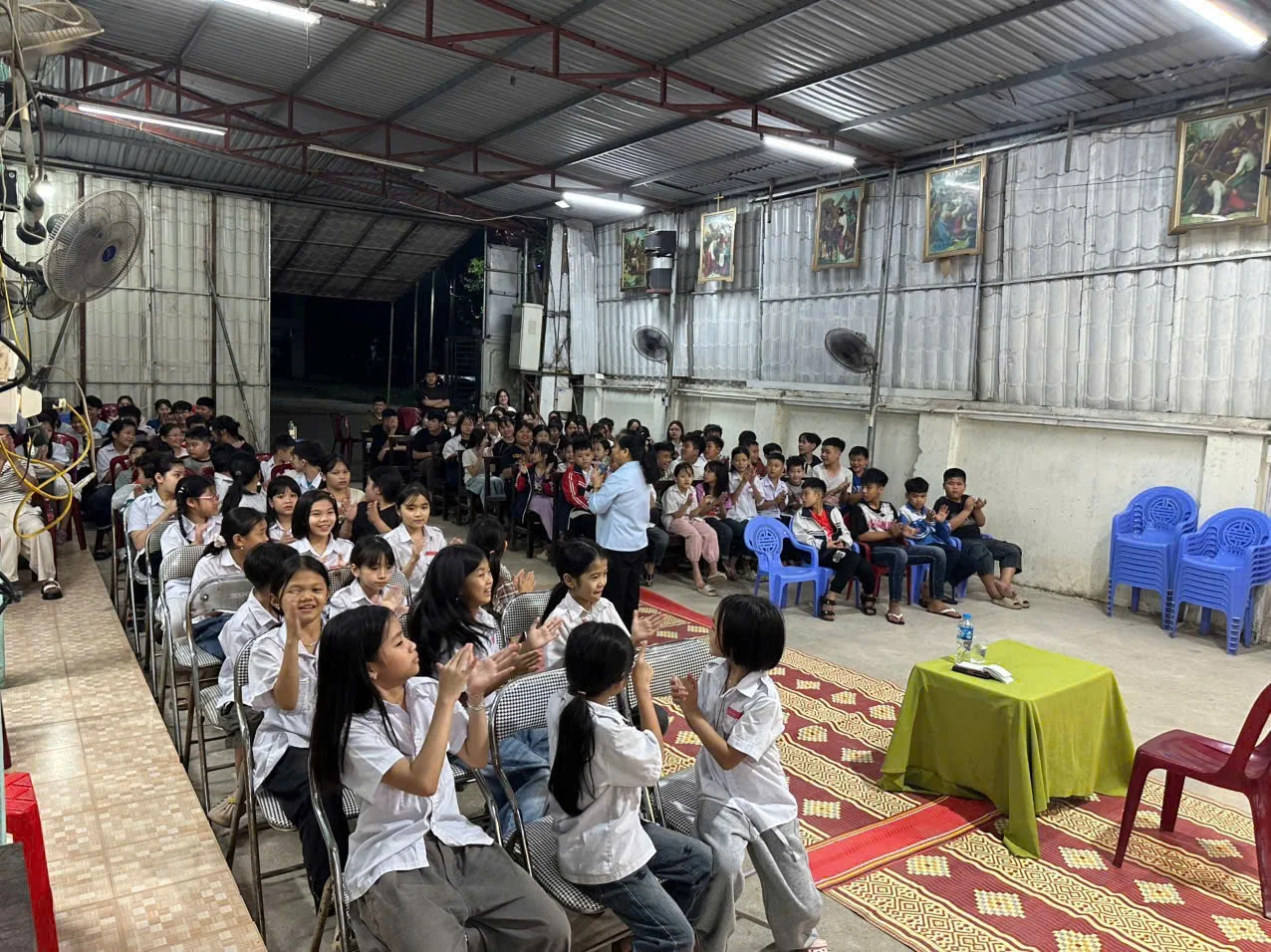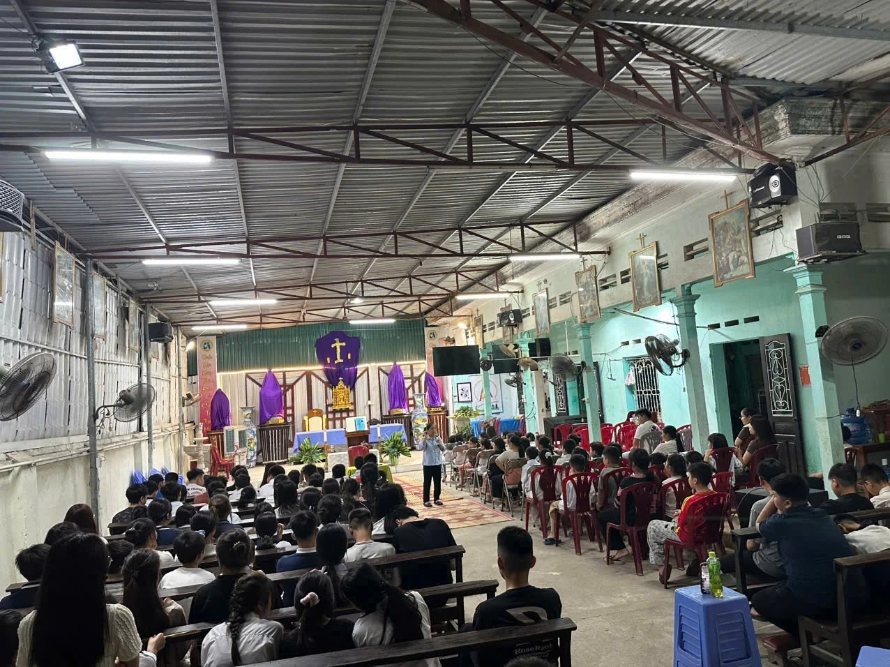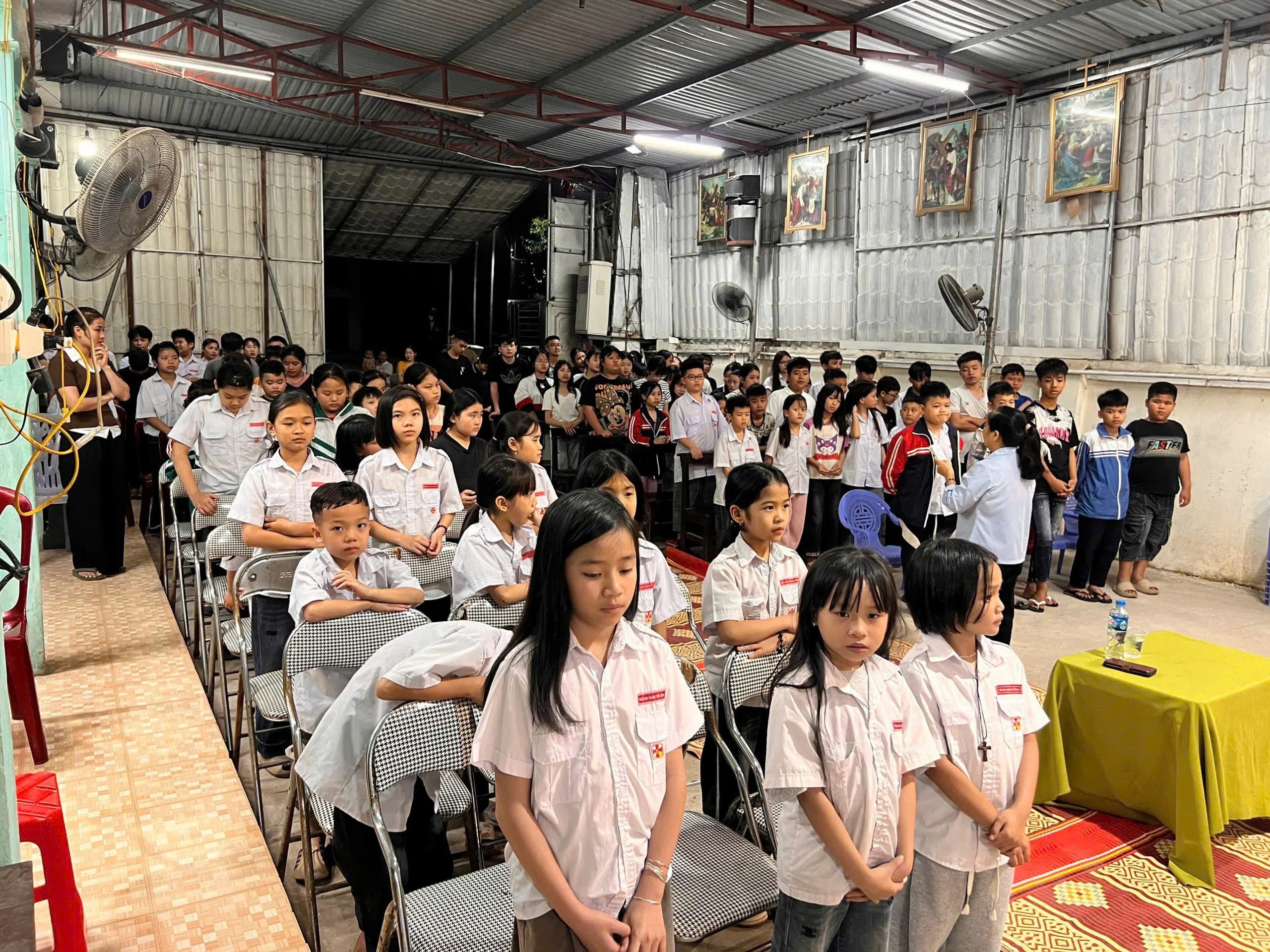 Đúng 19h30 ngày 23.3.2026, các em TNTT đã tập trung đông đủ về ngôi nhà thờ tạm đơn sơ nhưng tràn ngập tình yêu thương dưới sự hướng dẫn của Dì Têrêxa Trần Thị Thuận.