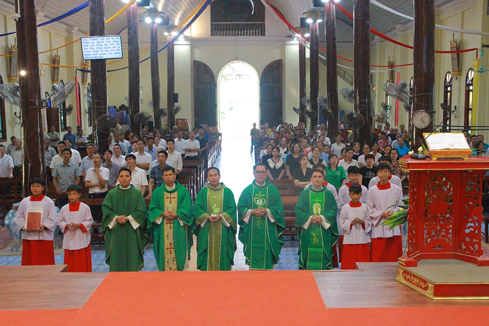 Đỉnh cao của buổi thường huấn là Thánh lễ được cử hành vào lúc 15g00. Thánh lễ do Cha Giuse Nguyễn Đức Trưởng chủ tế. Đồng tế có cha Vicentê Nguyễn Văn Quân – Chánh xứ Thiết Nham, quý cha trong Ban Thánh Nhạc. Thánh lễ thêm phần sốt sáng khi có hiện diện của quý dì thuộc Hội Dòng Đức Mẹ Hiệp Nhất, quý chủng sinh và đông đảo cộng đoàn giáo dân thuộc giáo xứ sở tại.