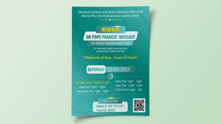 Nhân Ngày Thế Giới Truyền Giáo lần thứ 99 sẽ được cử hành vào ngày 19/10 tới đây, Ban Giám đốc Quốc gia của Các Hội Giáo hoàng Truyền giáo (POM) tại Việt Nam cùng Ban Thư ký Quốc tế của Liên hiệp Giáo hoàng Truyền giáo (PUM) tổ chức hội thảo truyền giáo trực tuyến bằng tiếng Việt. Mục tiêu là để đào sâu sứ điệp của Đức Giáo Hoàng nhân Ngày Thế Giới Truyền Giáo.