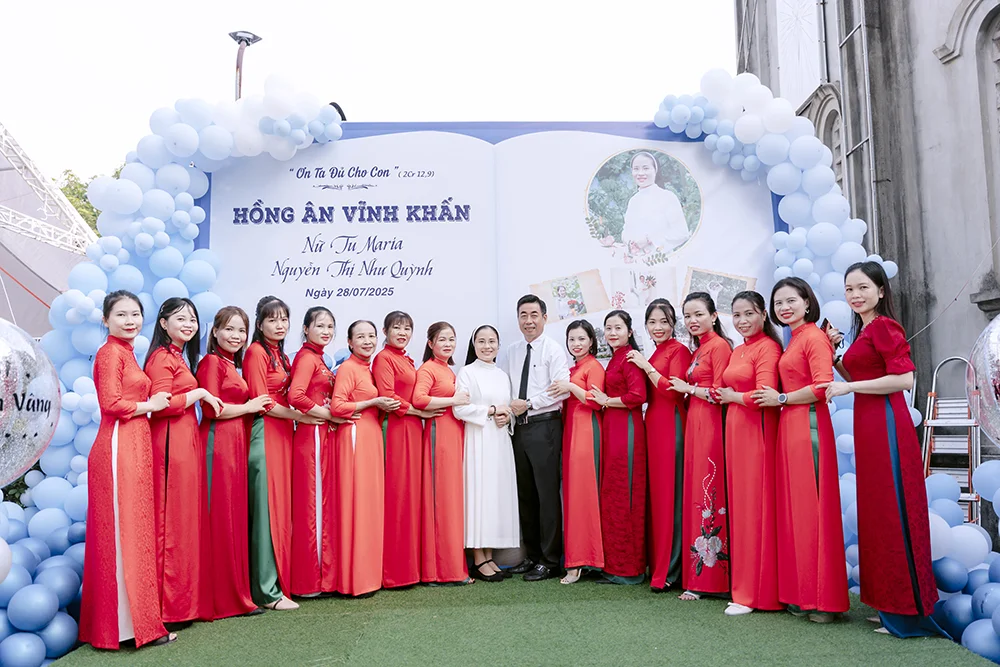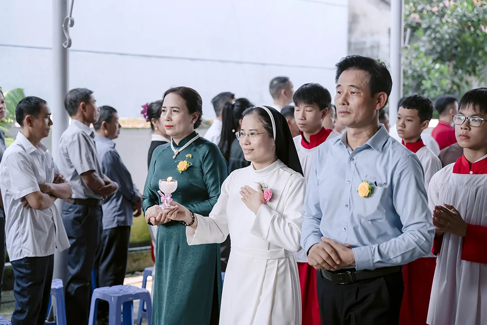 Vào lúc 09h00 thứ Bẩy, ngày 02 tháng 08 năm 2025, tại ngôi thánh đường xứ Hữu Bằng nhỏ bé, trang nghiêm với hơn 100 tuổi đời, nơi Dì Maria Nguyễn Thị Như Quỳnh sinh trưởng, phát triển và trưởng thành, Dì cùng với Quý Cha, Quý nam nữ tu sỹ, những người ân thân nhân đã dâng lễ tạ ơn Chúa vì Ngài đã thương, đã chọn và thánh hiến dì.