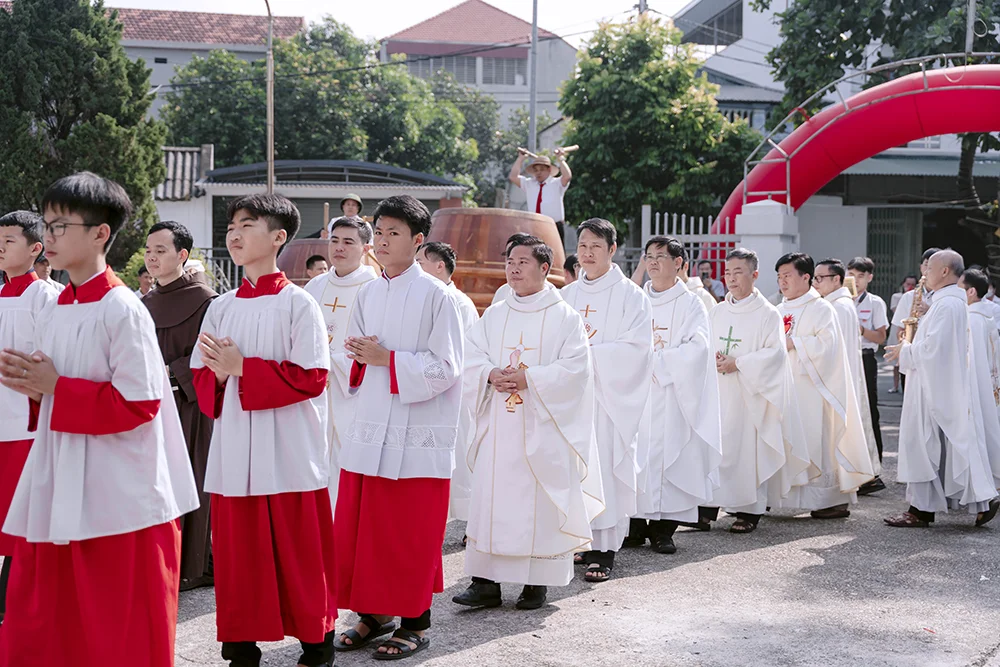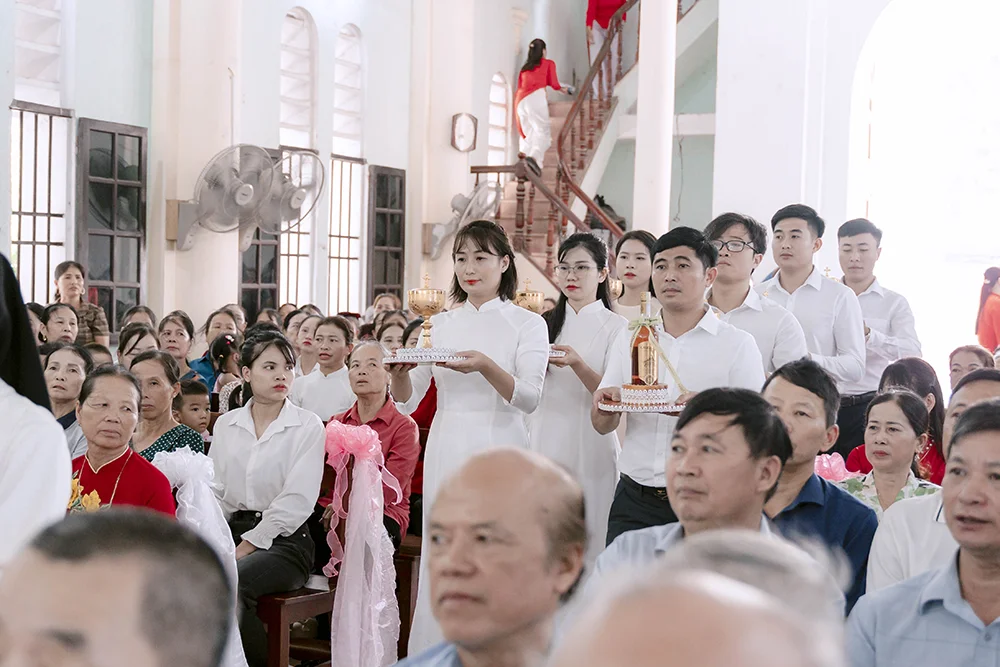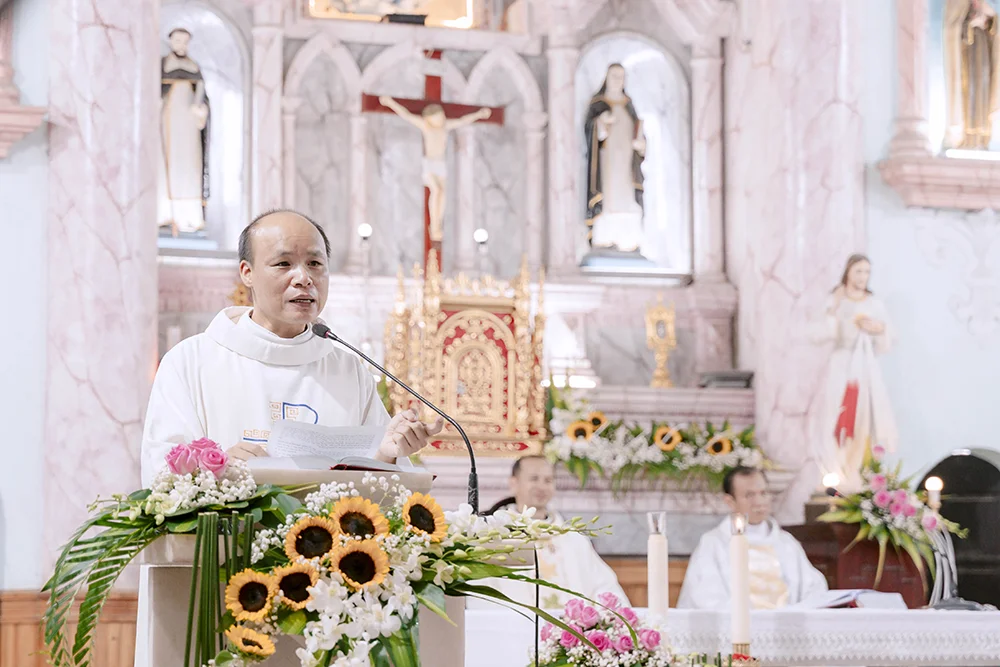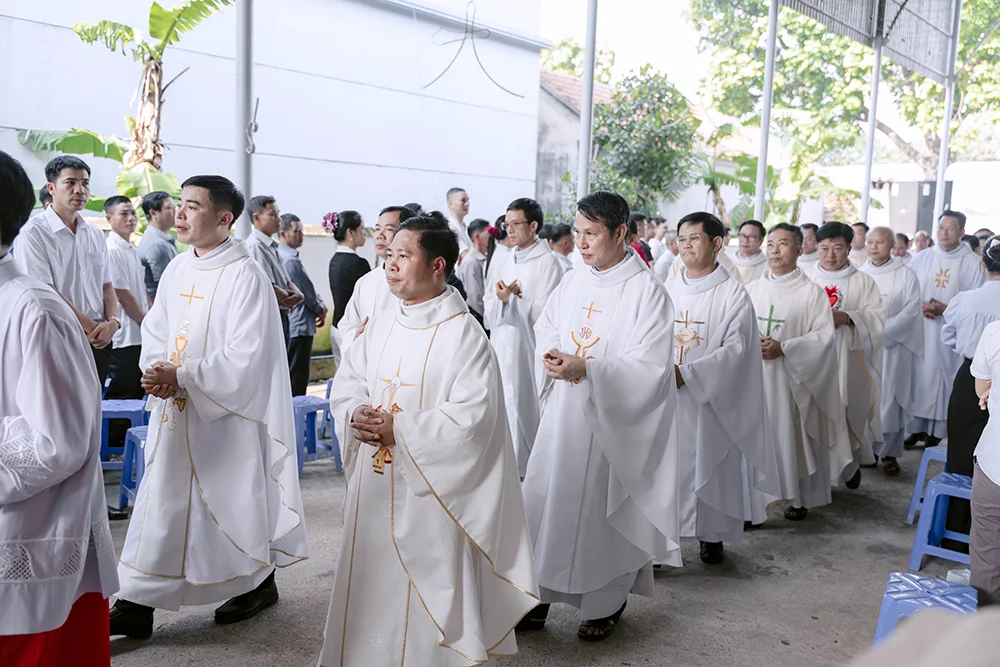 Chủ tế thánh lễ Tạ ơn hôm nay là Cha nghĩa phụ của dì, Gioakim Nguyễn Văn Thoan – Cha xứ Nhã Lộng, đặc trách Huynh đoàn Đaminh giáo dân Giáo phận Bắc Ninh. Chia sẻ thánh lễ hôm nay là Cha Gioan Kim Nguyễn Đức Thành – Chánh xứ Cẩm Giang.